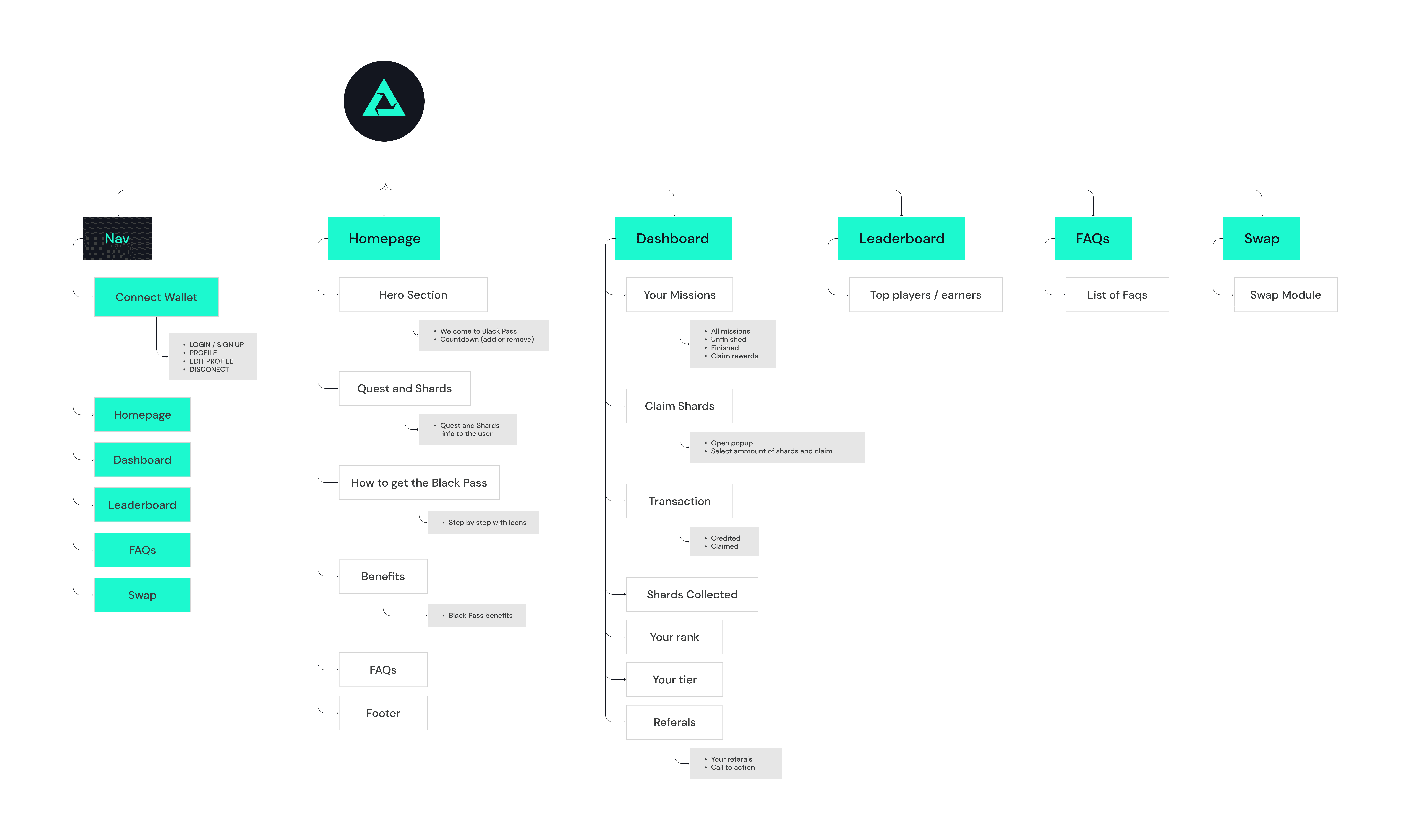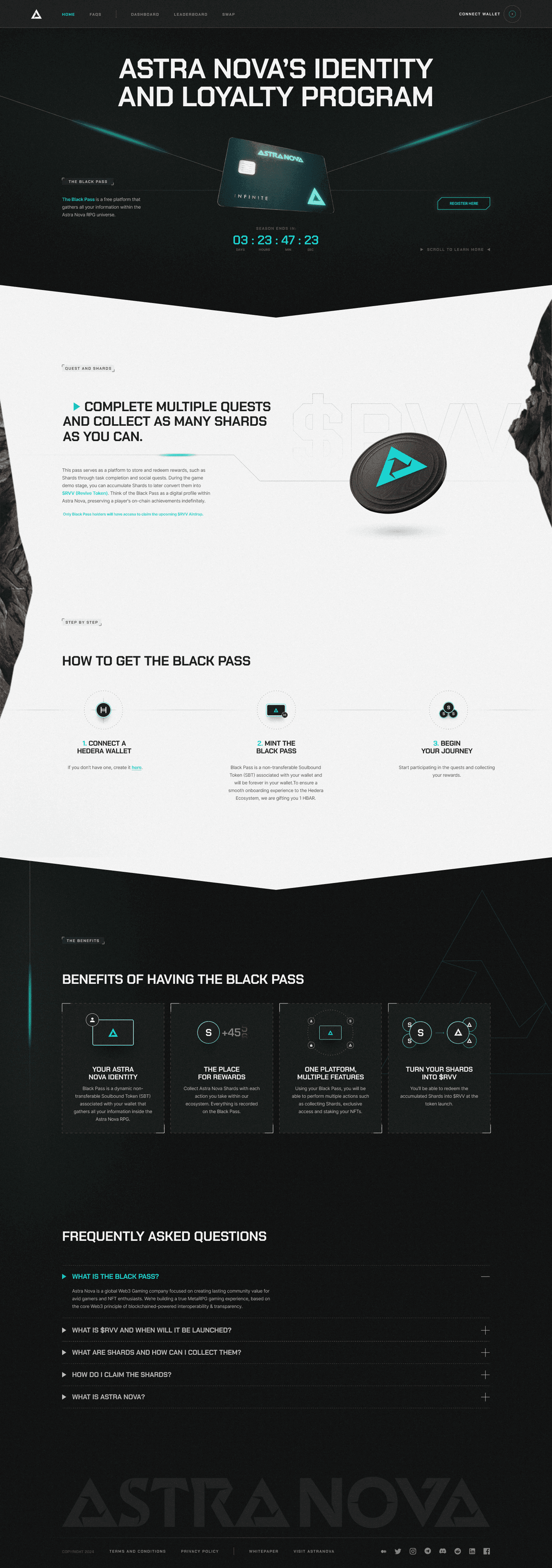 We designed the UX for Black Pass, Astra Nova’s SocialFi platform that rewards social engagement with in-game perks, from NFT onboarding to quest progression.